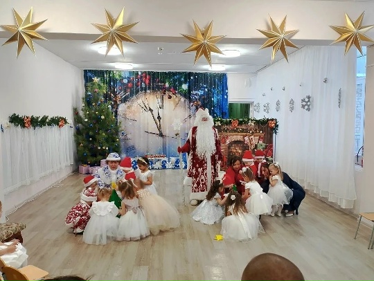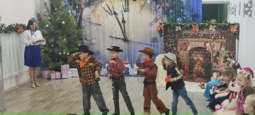 Девочки стали балеринками, мальчики — отважными ковбоями и силачами. Они готовились встретить любимого гостя — Деда Мороза. Когда он появился с большим мешком подарков, дети показали ему свои таланты: пели песни, рассказывали стихи и танцевали.