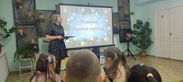 Юные «почемучки» окунулись в мир новогодних традицийРебята из группы «Почемучки» совершили познавательное путешествие в музей, где их радушно встретила Татьяна Александровна. Участники похода услышали интересные рассказы о появлении и развитии ёлочной игрушки, познакомились с народными обычаями и традициями русского народа.